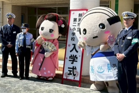昨日は、第二小学校入学式前のキャンペーンに「あつお」とおじゃましてきました‼