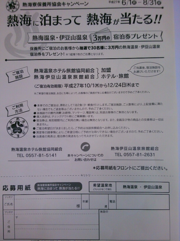熱海に泊まって熱海が当たる!キャンペーン 熱海寮保養所協会