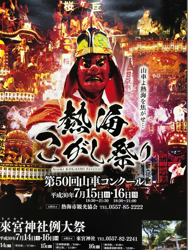 今週末7月15日(日)・16日(月・祝)はいよいよ熱海がお祭りムード一色に染まる2日間、「熱海こがし祭り山車コンクール」が開催されます。