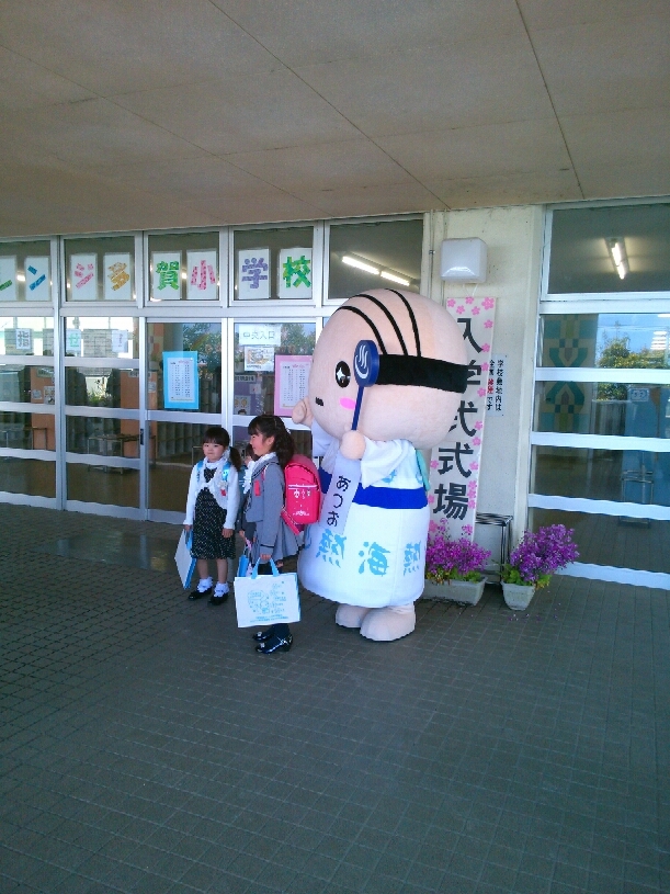 あつおも1つの小学校に行ってあつおがデザインされたバックを新入生のみんなに配布したあつ!