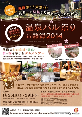 1月25日(土)〜29日(水)まで「温泉バル祭りin熱海2014」実施されます。