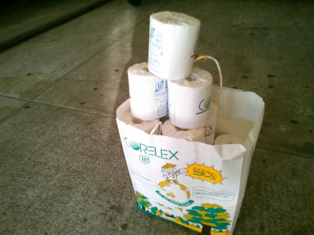 回収された紙資源ゴミはリサイクルされトイレットペーパーとなり、ご協力していただいた方々へ配布されます。