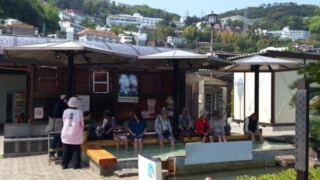 熱海駅前には、「足湯」が設置されています。熱海へご到着の際には、温まってから市内へお出掛け下さいませ♪