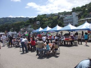 南熱海地区の伊豆多賀温泉では、毎月定期的に「長浜特設市」を開催しています。イカメンチ・干物・鮮魚・貝類・ラーメン・焼きそば等の飲食店や地元・南熱海で採れた季節の農産物や魚介類・干物等の」販売、フリーマーケットが所狭しと並びます!是非一度ご来場下さい♪