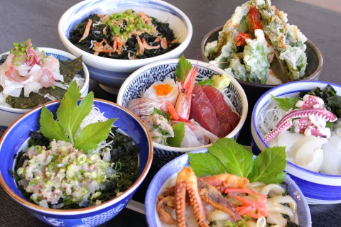 初島の新鮮な食材で作りました丼ぶりを是非ご堪能ください。