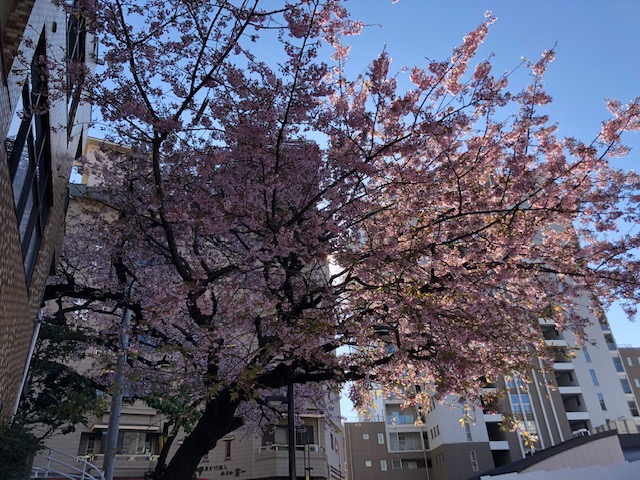 ホテル貫一さん前にある「坂町の寺桜」。