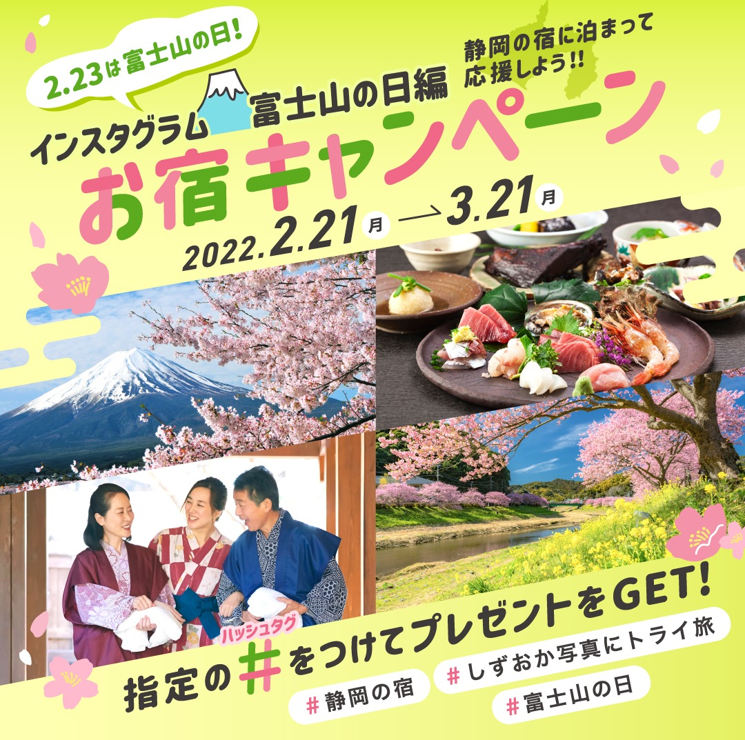 「#しずおか写真にトライ旅」「#静岡の宿」「#富士山の日」の3つのハッシュタ