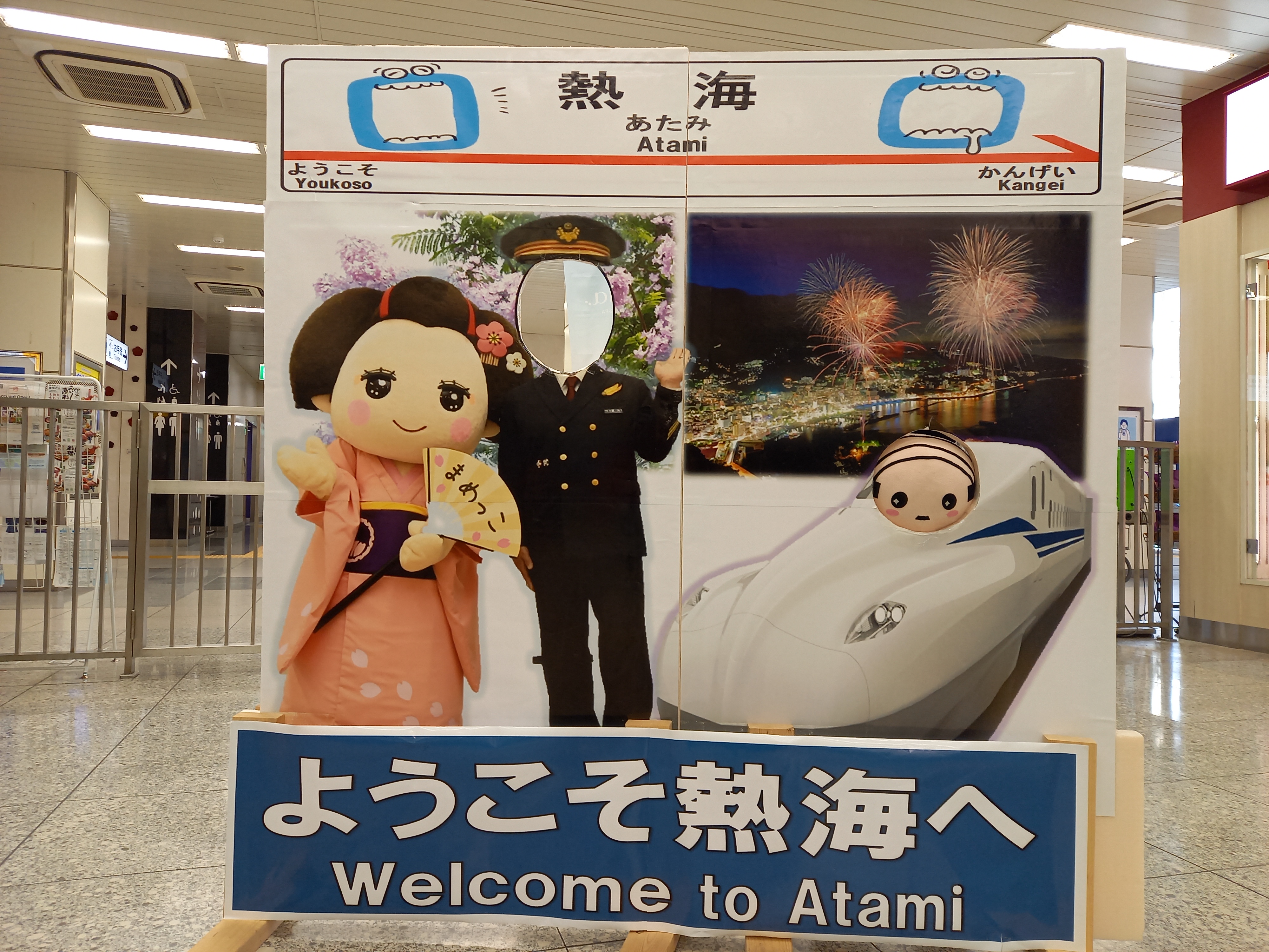 JR熱海駅には、「まめっこ」と駅員さんと記念写真をとれるスポットがあるあつ(^_-)-☆