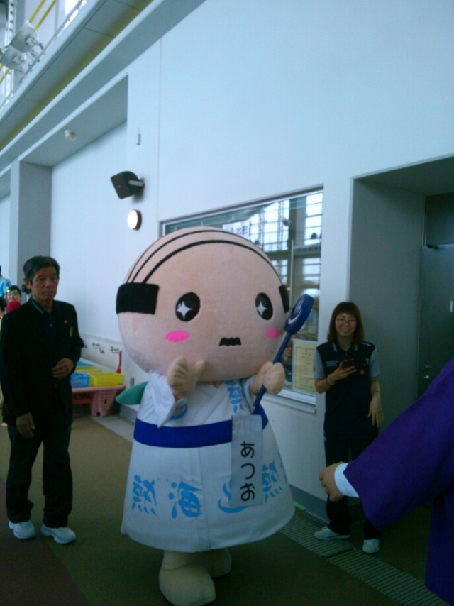 先週28日(土)は、「日本マスターズ水泳大会」がマリンスパあたみで開催され、開会式に呼んでいただいたあつよ!