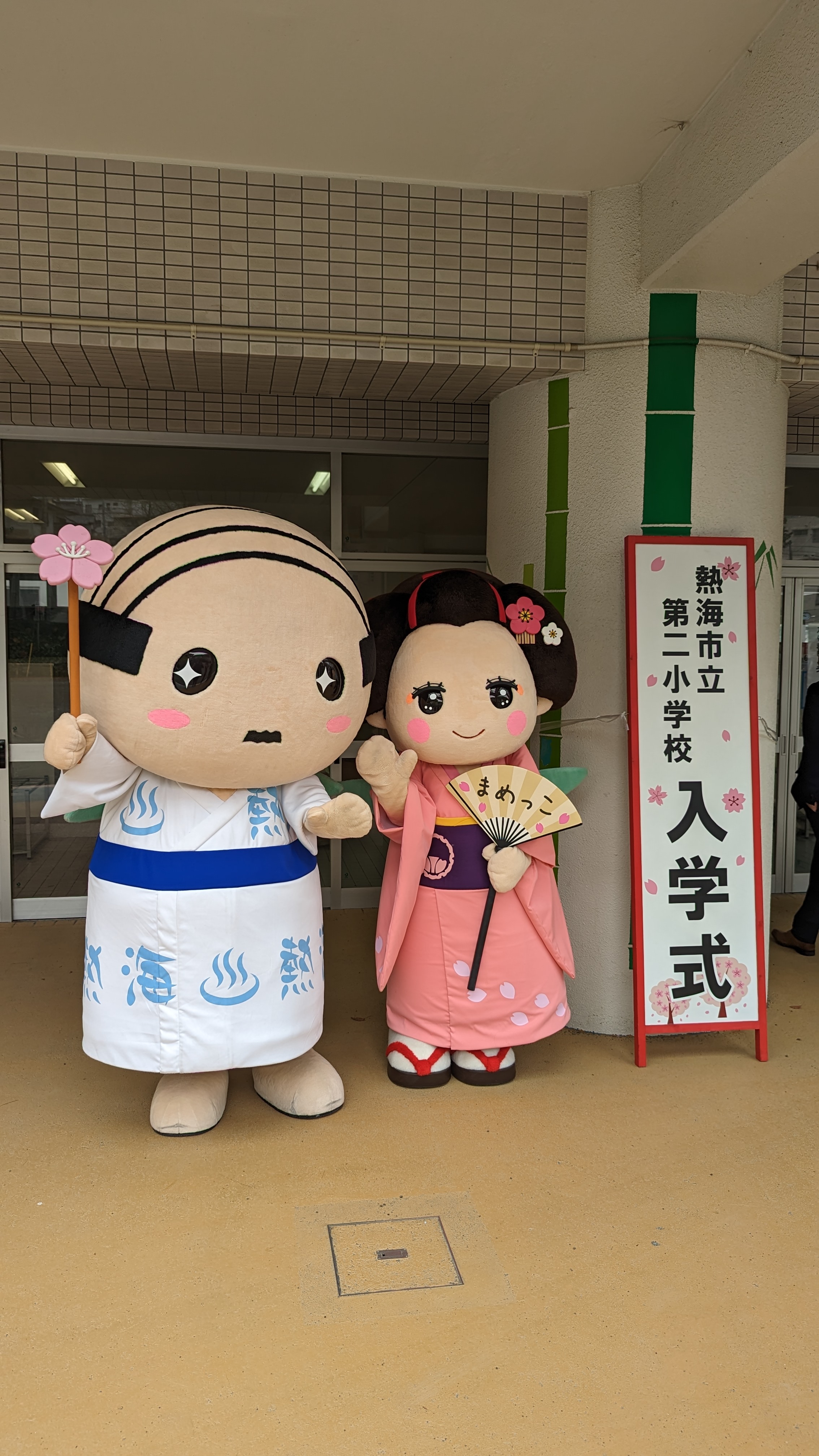 4月7日(金)「あつお」「まめっこ」と熱海第二小学校へ『入学おめでとうキャンペーン』に行ってきました!(^^)!