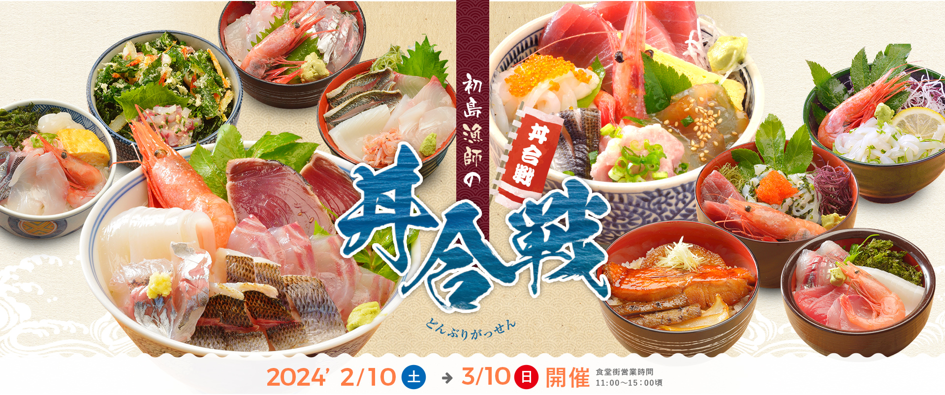 明日、2/10(土)~3/10(日)まで初島 丼合戦が開催されます。
