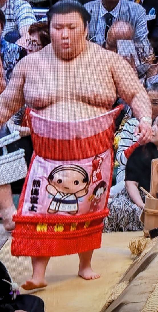 昨日、夏場所6日目幕内土俵入りの際、熱海富士関「あつお」の化粧を付けて