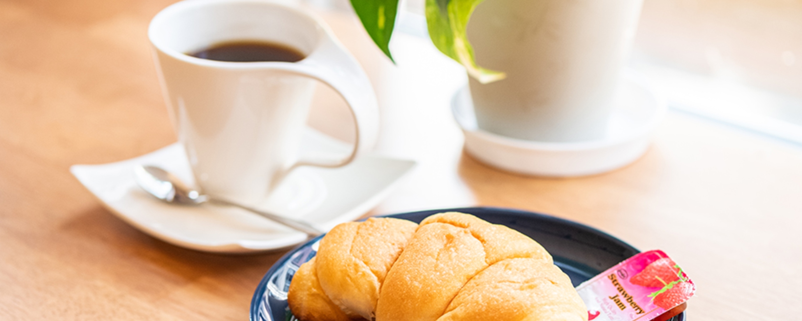 朝には、モーニングコーヒーとパンを無料サービス致します。