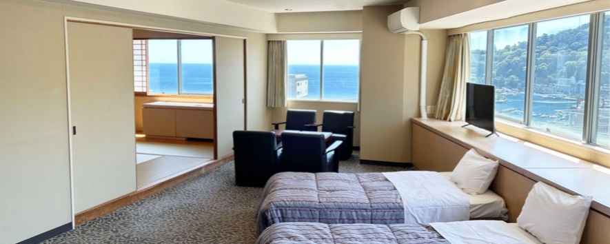 観光、ビジネスにも利便性が高く、ホテル直下より湧き出る自家源泉は熱海温泉の中でも古い歴史を誇る。岩盤浴も無料で大好評!