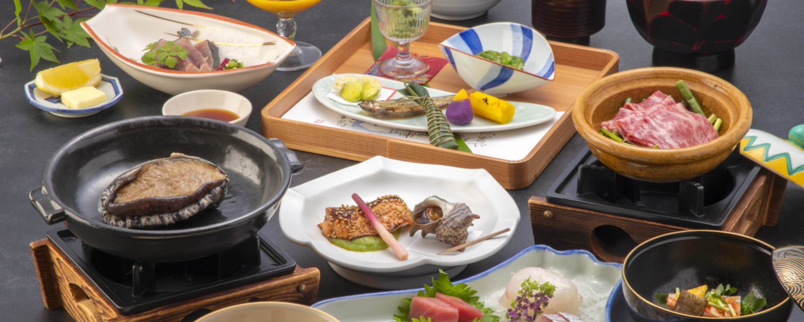 厳選吟味した新鮮な山海の旬の素材を取り合わせ、選び抜かれた器と調和した京風懐石料理で心和むひとときをお愉しみ下さいませ。